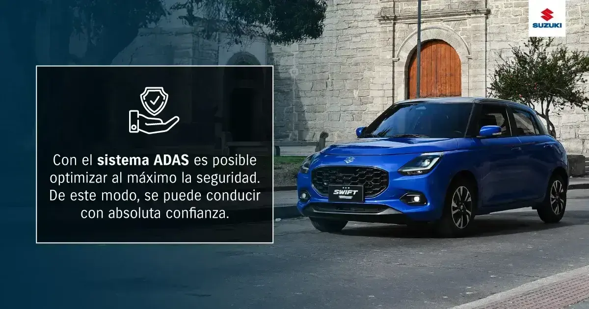 Swift Hybrid: este auto ecológico es sinónimo de excelencia al hablar de seguridad. La razón es que incorpora el sistema ADAS , permitiendo que puedas manejar con máxima confianza.