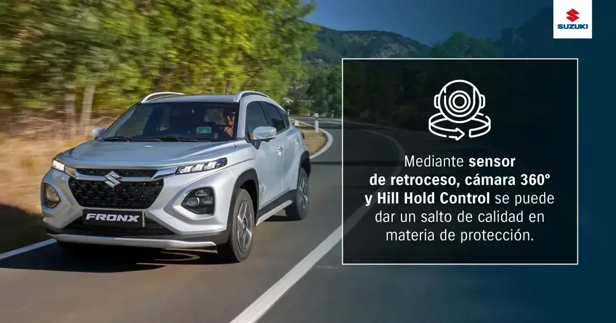 Fronx Hybrid: además de ayudar a proteger el planeta, este modelo hÃbrido se ocupa de resguardar de la mejor manera el bienestar de sus ocupantes. AsÃ, su poderoso escudo de seguridad integra cámara 360 (versiones GLX) y Hill Hold Control.