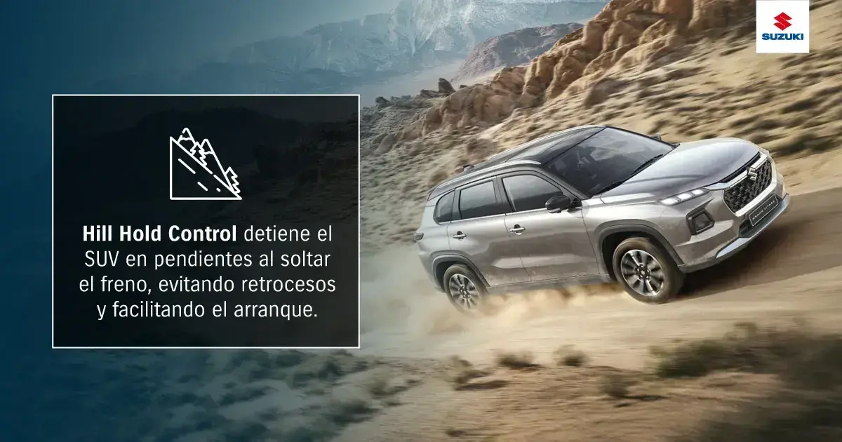 En vehÃculos llamados a la aventura como un SUV 4X4 , el Hill Hold Control (HHC) resulta de gran utilidad. Por lo mismo, el Grand Vitara Hybrid integra este sistema entre los componentes claves de su diseño.