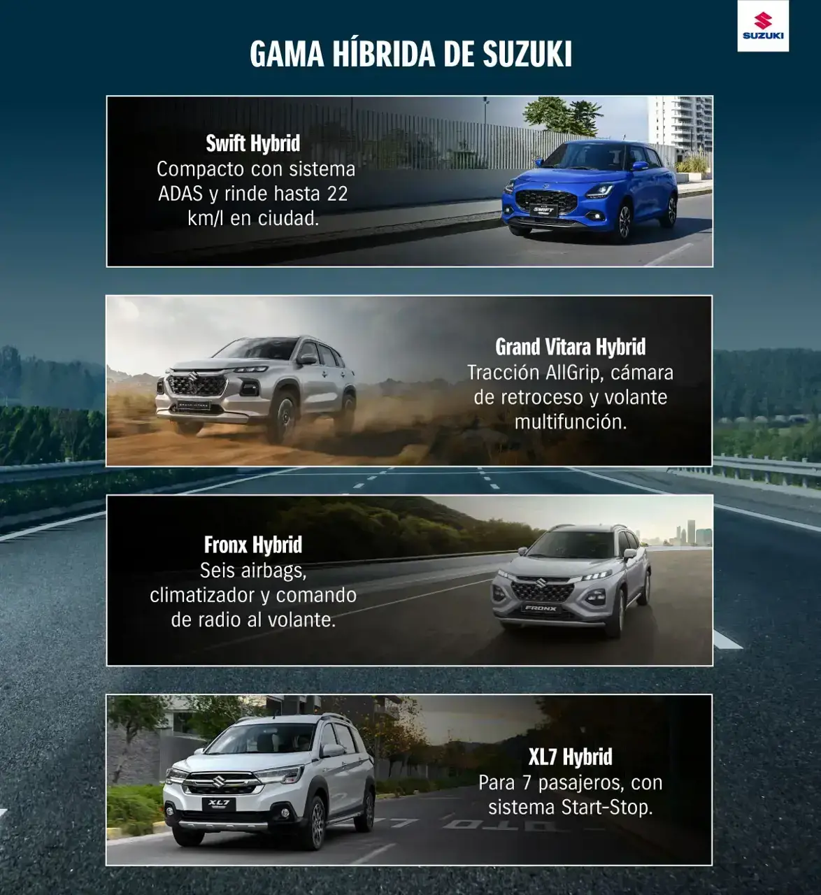Dar el paso hacia un hÃbrido es avanzar con conciencia, tanto desde lo ambiental como desde lo económico. Suzuki ofrece una familia de vehÃculos Mild Hybrid pensada para distintos estilos de vida, integrando innovación, eficiencia y confiabilidad.